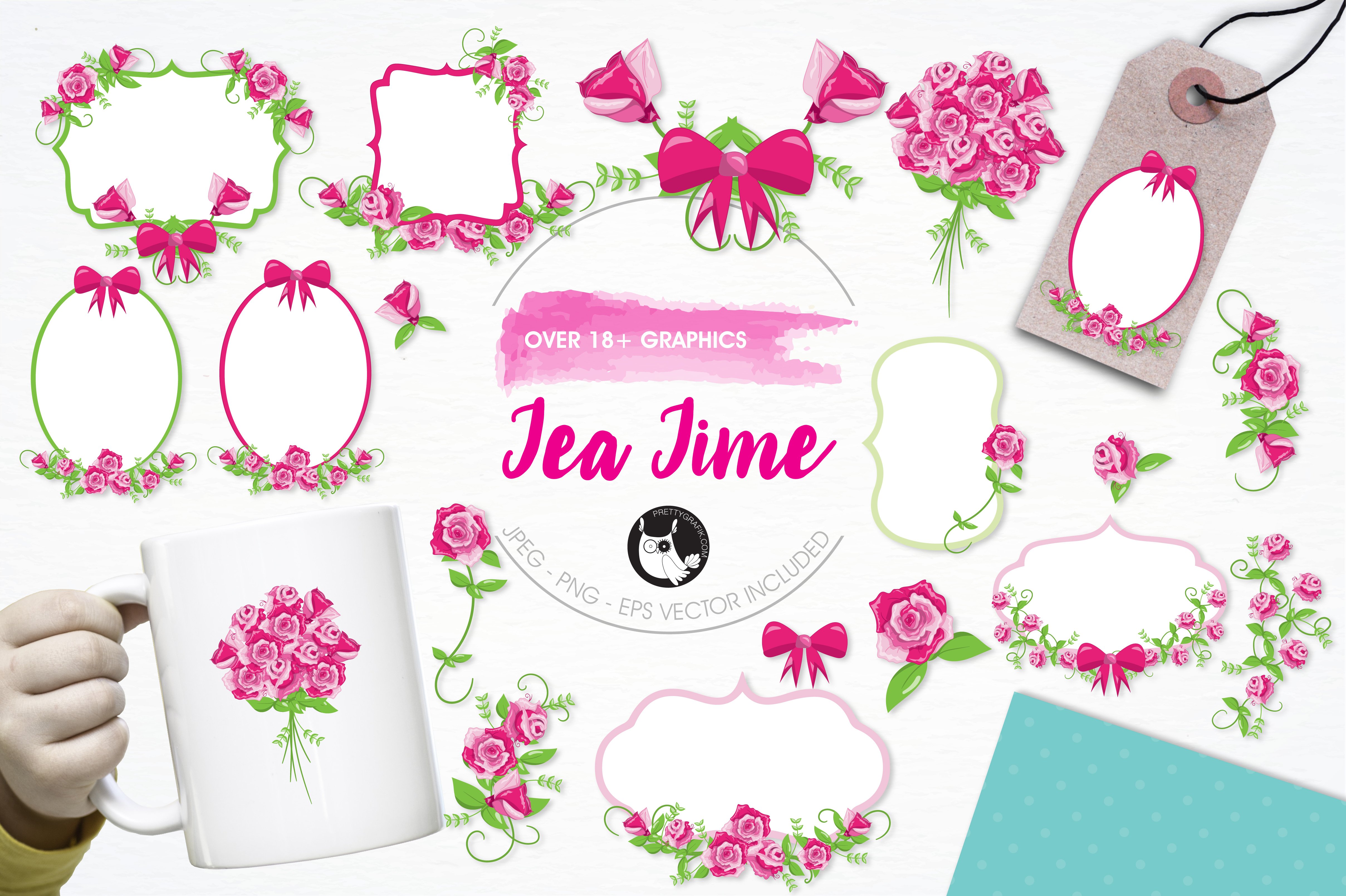 Download Vector "Tea time illustration pack - Vector Image" / Tea time illustration pack - Vector Image - Vector на тему графика illustration,flowers,vector,floral,graphics,clipart,clip art,icons,frame,eps,prettygrafik,roses