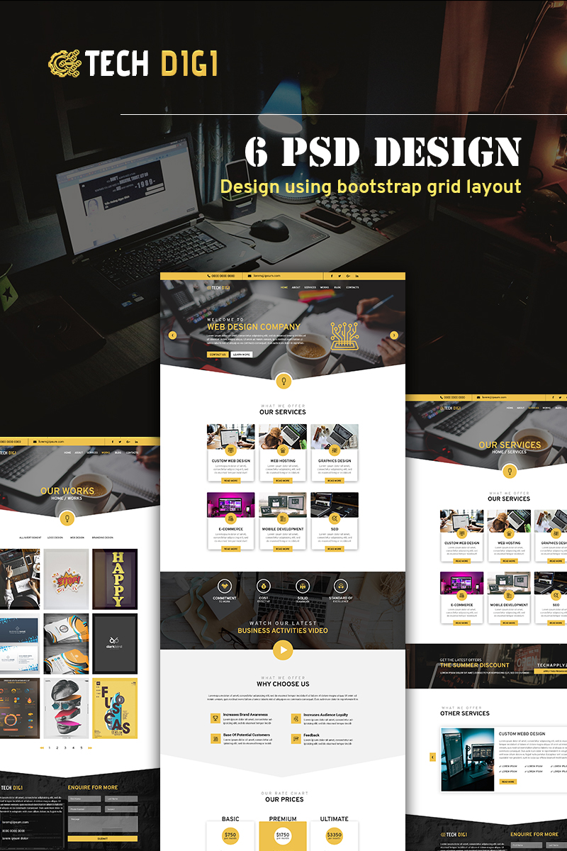 Download PSD шаблон "TechDigi PSD Template" / TechDigi PSD Template - PSD шаблон на тему графика web design company website seo agency business creative designer digital webdesigning professional ecommerce webstyle responsive template theme