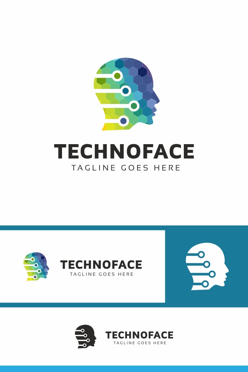 Download Шаблон логотипа "Techno Face Virtual Human Logo Template" / Techno Face Virtual Human Logo Template - Шаблон логотипа на тему графика abstract app blue colorful creative digital face head human digital idea mind hitech pixel internet modern pixel man pixels robo
