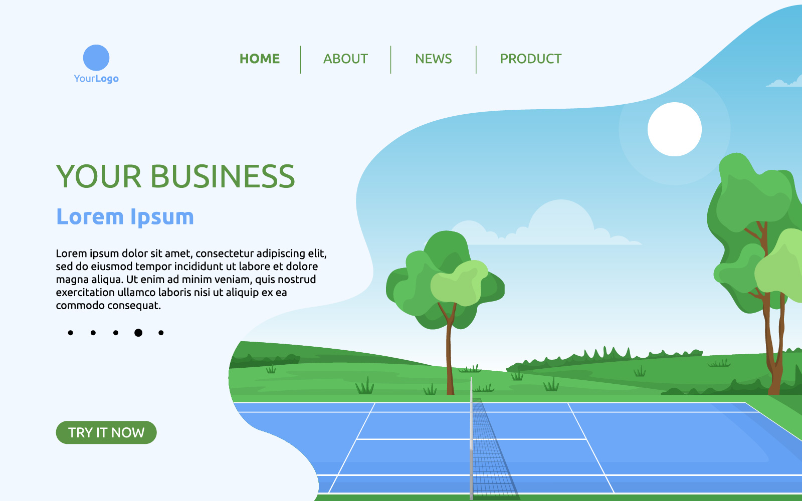 Download Иллюстрация "Tennis Court Page - Illustration" / Tennis Court Page - Illustration - Иллюстрация на тему графика outdoor,tennis,court,sport,game,recreation,landing,page,web,template,vector,view,match,set,scene,athletic,activity,illustration,cartoon,player