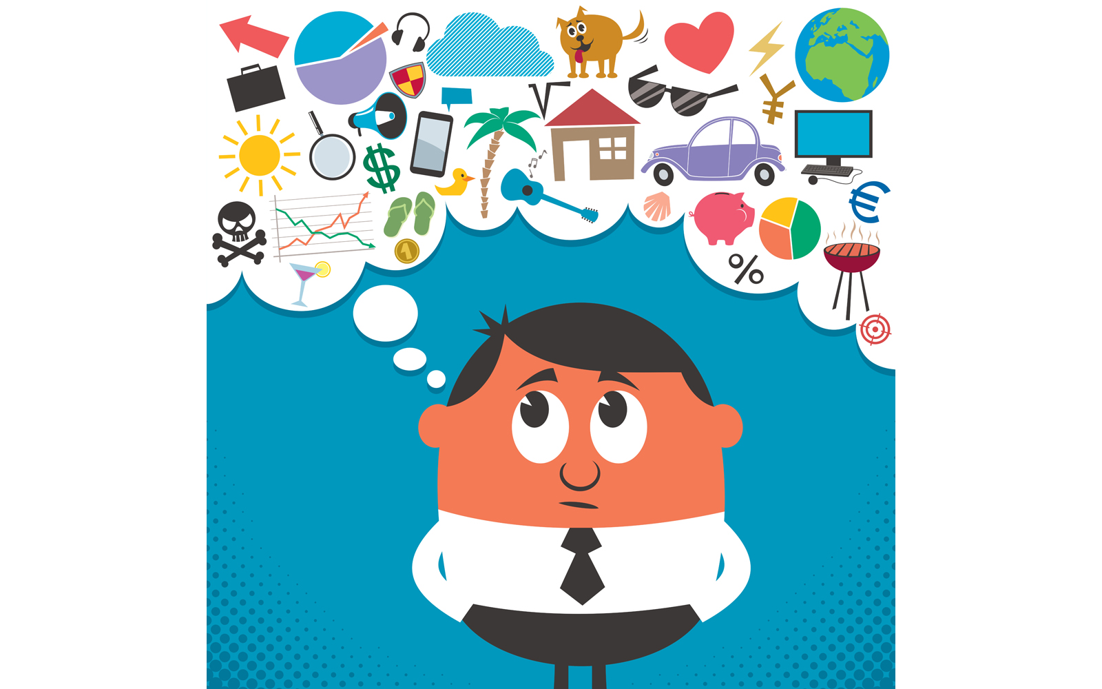 Download Иллюстрация "Thinking - Illustration" / Thinking - Illustration - Иллюстрация на тему графика thinking,thought,man,business,businessman,character,person,manager,office worker,professional,people,portrait,concept,idea,worried,concerned,anxious,problem,attention,life