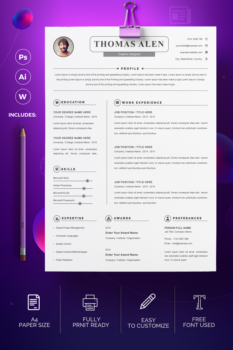 Download Резюме "Thomas Resume Template" / Thomas Resume Template - Резюме на тему графика a4 clean resume cv doc elegant template indesign infographic modern professional creative design minimal pages portfolio word us letter