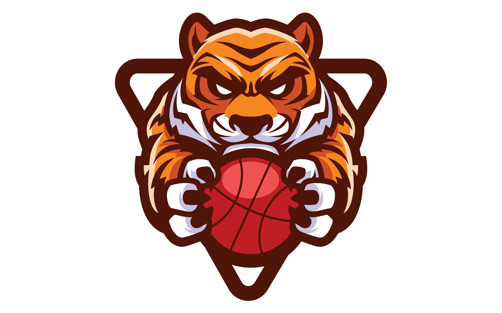 Download Иллюстрация "Tiger Basketball Mascot - Illustration" / Tiger Basketball Mascot - Illustration - Иллюстрация на тему графика mascot,tiger,sport,team,animal,symbol,sign,logo,basketball,ball,holding,league,icon,aggressive,wild,strong,tough,predator,cat,head