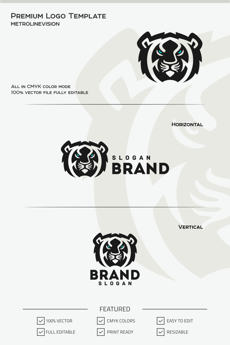 Download Шаблон логотипа "Tiger Logo Template" / Tiger Logo Template - Шаблон логотипа на тему графика bolt cool emblem jaguar king lion modern power simple sport strength strong tiger head logo wild