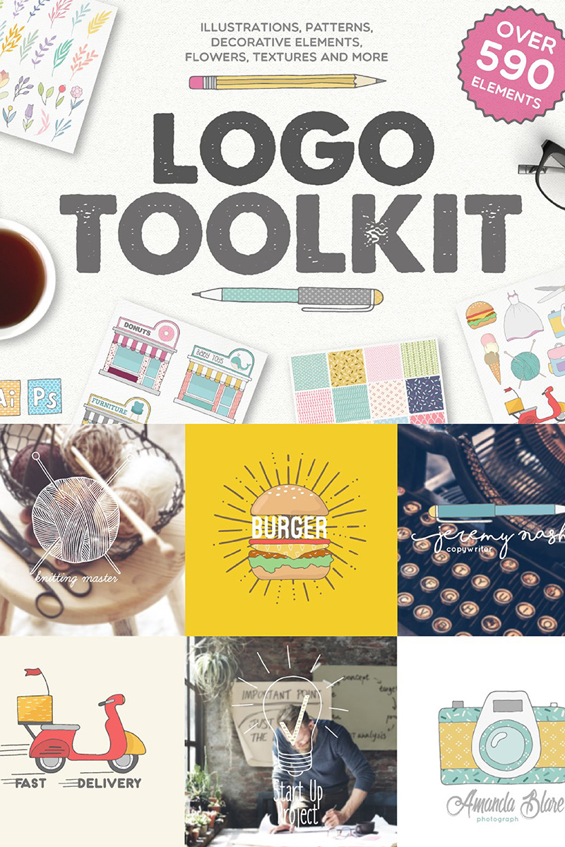 Download Шаблон логотипа "Toolkit [ Over 590 Elements ] Logo Template" / Toolkit [ Over 590 Elements ] Logo Template - Шаблон логотипа на тему графика logo toolkit logos branding web site blog shop store cover magazine business flower frames decorative elements textures patterns sunburst mandala