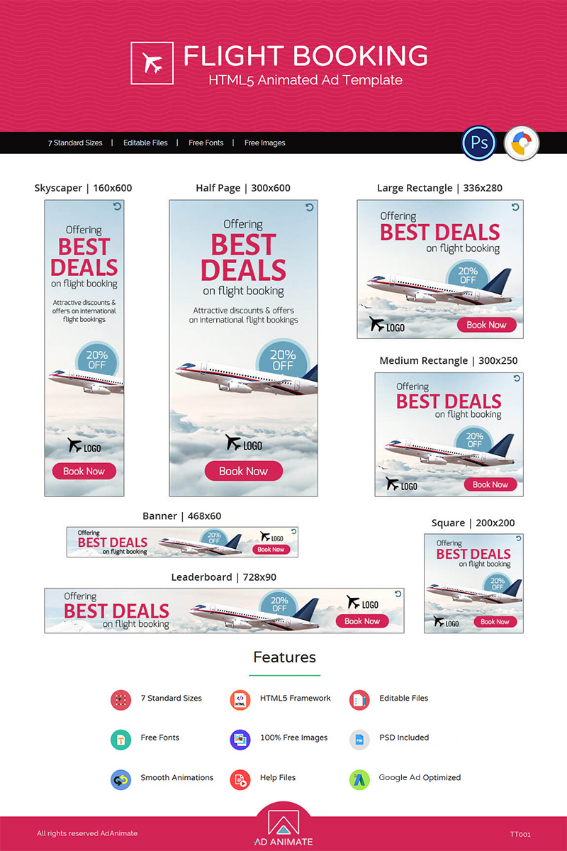Download Animated Banner "Tour & Travel | Flight Booking Animated Banner" / Tour & Travel | Flight Booking Animated Banner - Animated Banner на тему графика ad html5 banners business creative ads gwd ad banners gwd templates booking popular tourism holiday travel flight