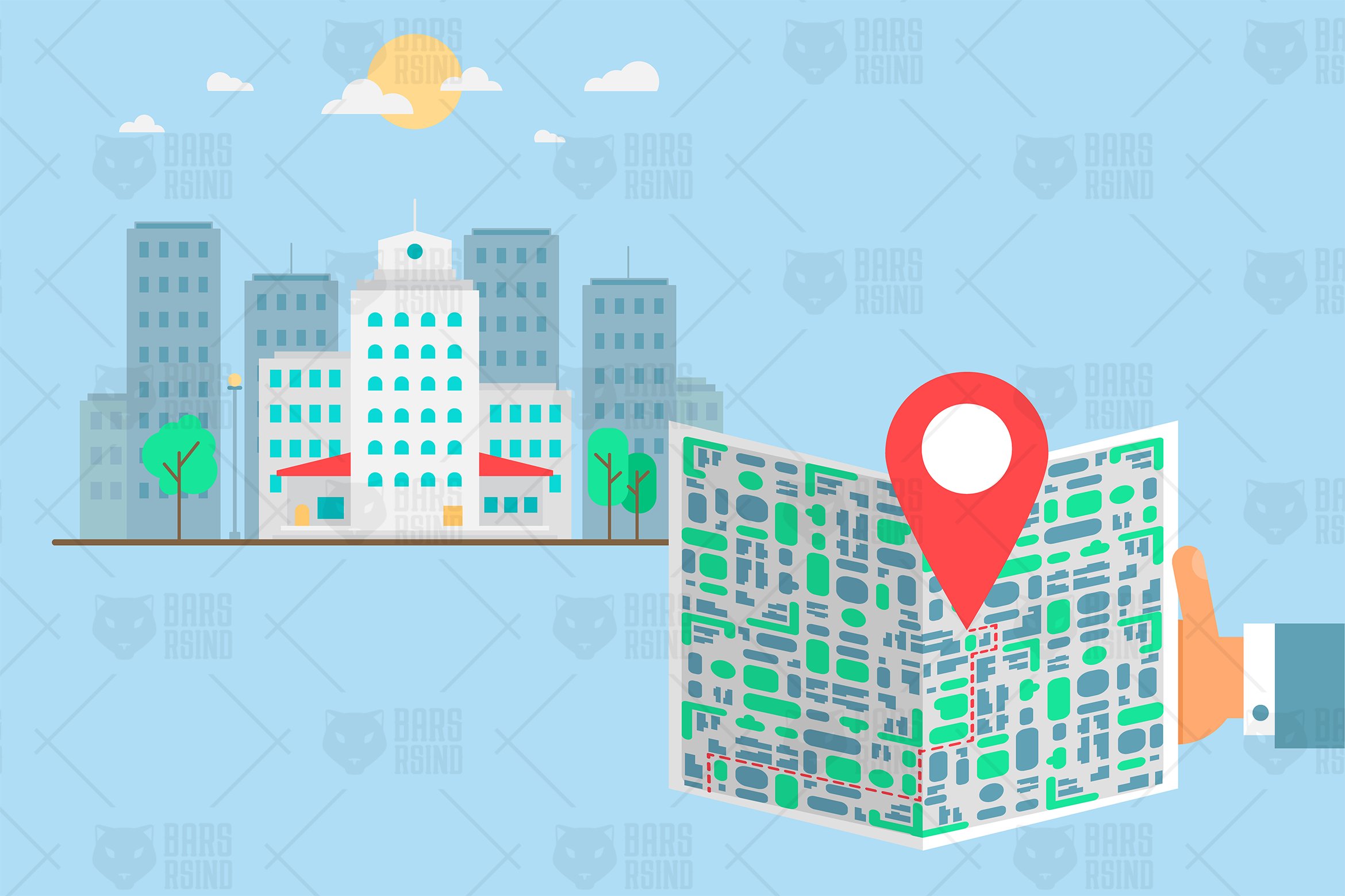 Download Фирменный стиль "Tourist With Map In City - Corporate Identity Template" / Tourist With Map In City - Corporate Identity Template - Фирменный стиль на тему графика modern,illustration,design,sign,web,vector,marker,hand,travel,mobile,map,app,business,technology,city,town,building,urban,search,smartphone,phone,background,digital,pin,navigation,icon,banner