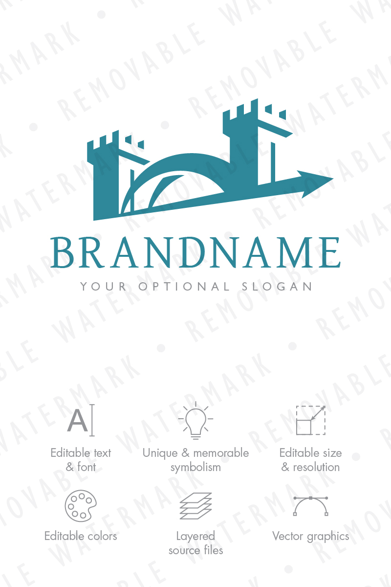 Download Шаблон логотипа "Tower Bridge - Logo Template" / Tower Bridge - Logo Template - Шаблон логотипа на тему графика simple trust bridge solution growth success development grow fortress crossing transit watchtower consulting gate logo design template security stability fort