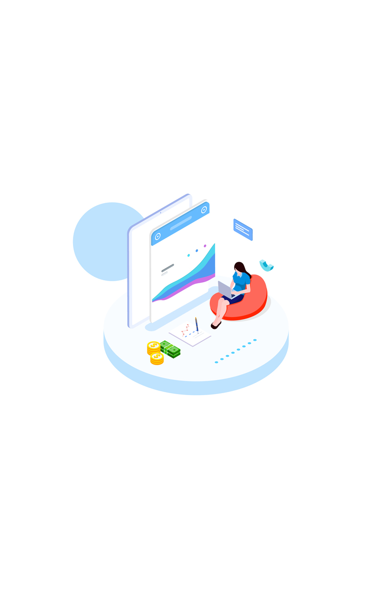 Download Иллюстрация "Tracking cost 3 - Illustration" / Tracking cost 3 - Illustration - Иллюстрация на тему графика isometric illustration blockchain platform finance report chart analysis growth device laptop bussiness strategy people design.