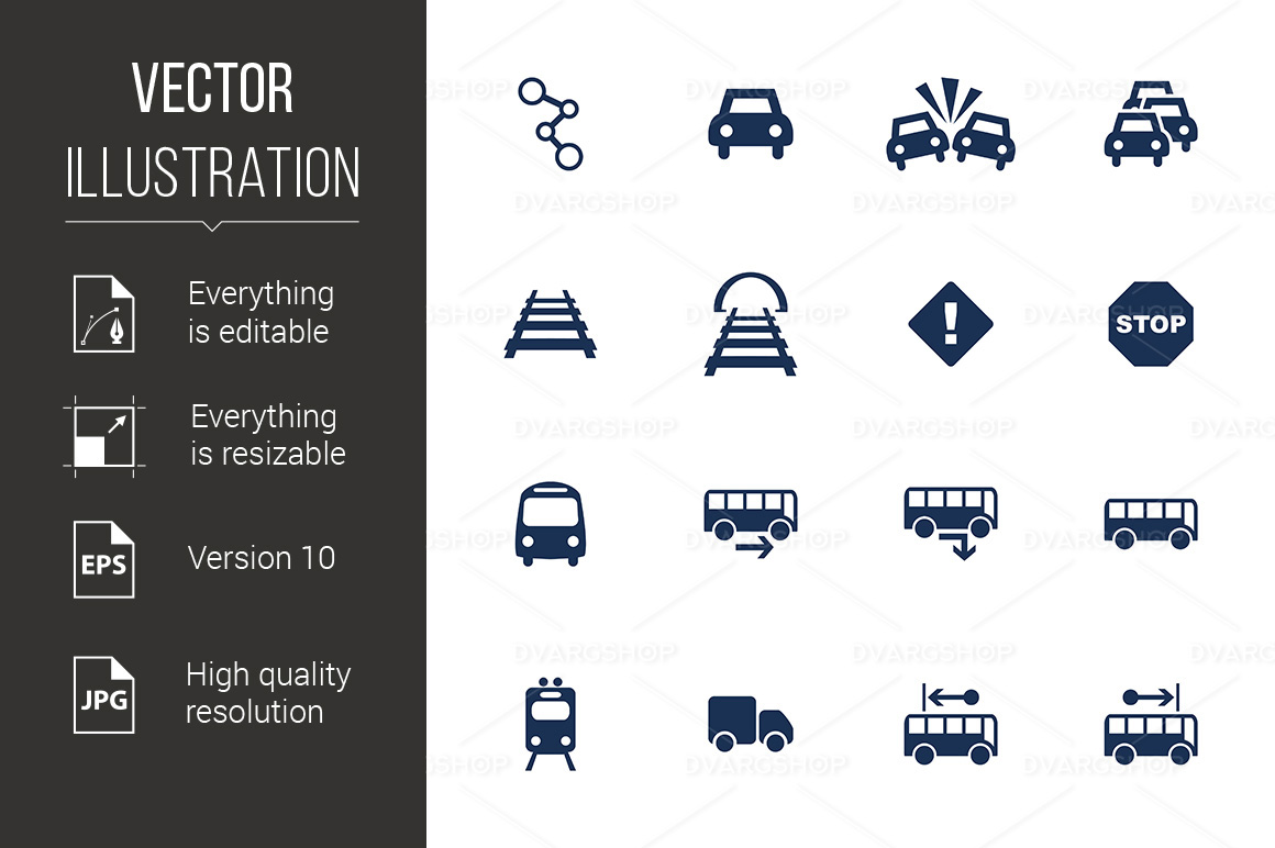 Download Vector "Transportation Icons - Vector Image" / Transportation Icons - Vector Image - Vector на тему графика flat,car,transport,icons,transportation,icon,set,communication,technology,navigation,direction,simple,way,design,object,attention,software,road junction,truck,illustration