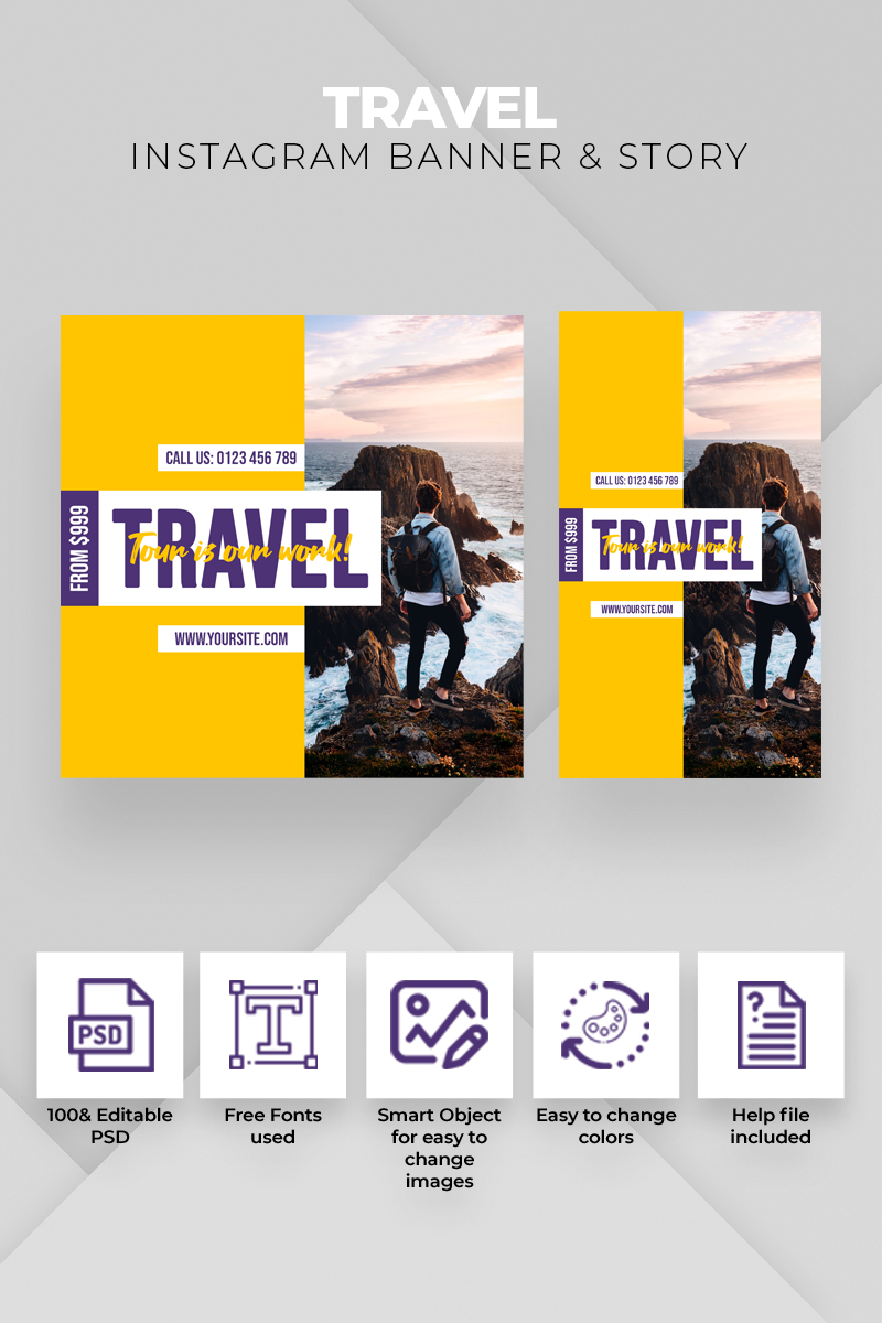 Download Шаблон для соцсетей "Travel Instagram Banner & Story Social Media Template" / Travel Instagram Banner & Story Social Media Template - Шаблон для соцсетей на тему графика adventure banner beach business celebration entertainment fresh fun holiday instagram post marketing multipurpose promotion sale social media summer sun swimmer