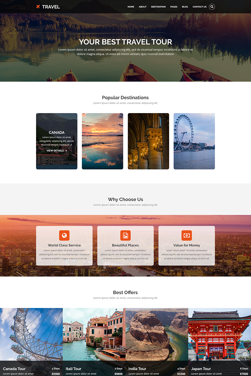 Download PSD шаблон "TRAVEL - Tours and Travel PSD Template" / TRAVEL - Tours and Travel PSD Template - Адаптивный PSD шаблон на тему путеводитель events holiday hotels package-tours reservation resorts tourism tours traveling trip travel tour agency traveler vacation cars cruises family flight holidays