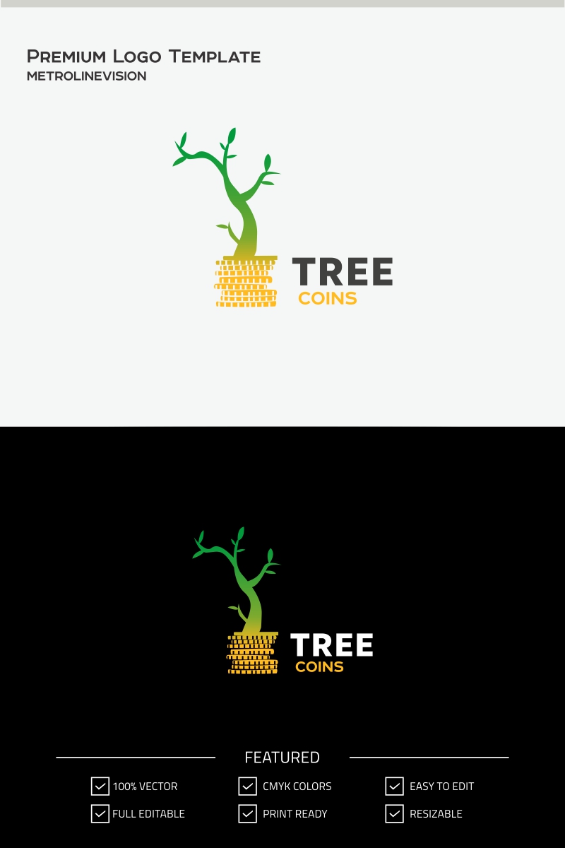 Download Шаблон логотипа "Tree Coins Logo Template" / Tree Coins Logo Template - Шаблон логотипа на тему графика agency app business company corporate creative design designer eco ecology elegant forest coins green insurance logo logotype finance invest coin,bank,coin,coins,design,finance,graphic,green,
