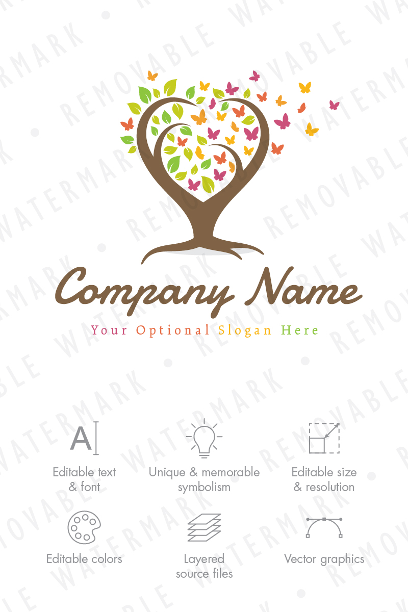 Download Шаблон логотипа "Tree Of Butterflies - Logo Template" / Tree Of Butterflies - Logo Template - Шаблон логотипа на тему графика tree leaf love beauty heart colorful butterfly change spring swarm transformation alteration hope logo design template garden flower dream season