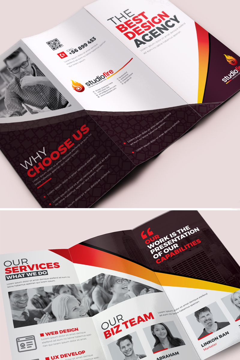 Download Фирменный стиль "Tri-Fold Brochure - - Corporate Identity Template" / Tri-Fold Brochure - - Corporate Identity Template - Фирменный стиль на тему графика tri-fold brochure design template 3 fold triangle square twi-fold corporate product business creative clean advertising elegant professional simple trifold business