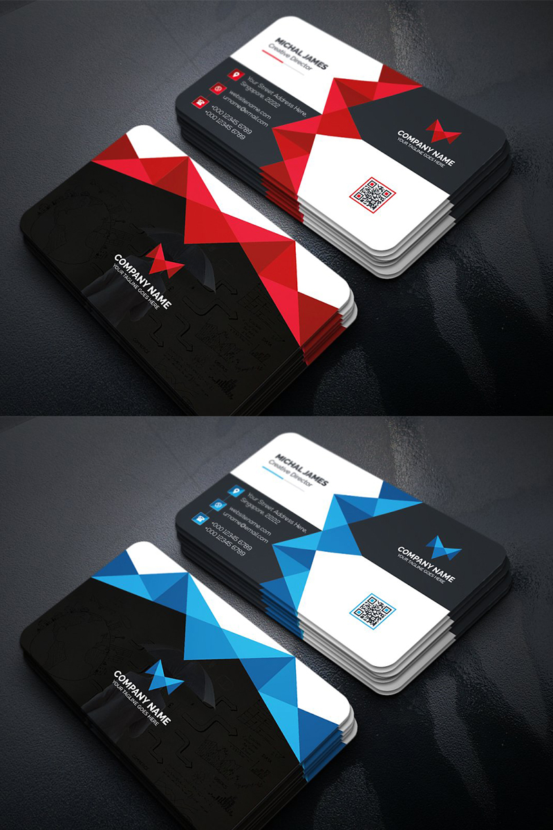 Download Фирменный стиль "Triangular Business Card - Corporate Identity Template" / Triangular Business Card - Corporate Identity Template - Фирменный стиль на тему графика black blue business card design clean corporate creative cyan elegant green line minimalist modern template orange personal print red
