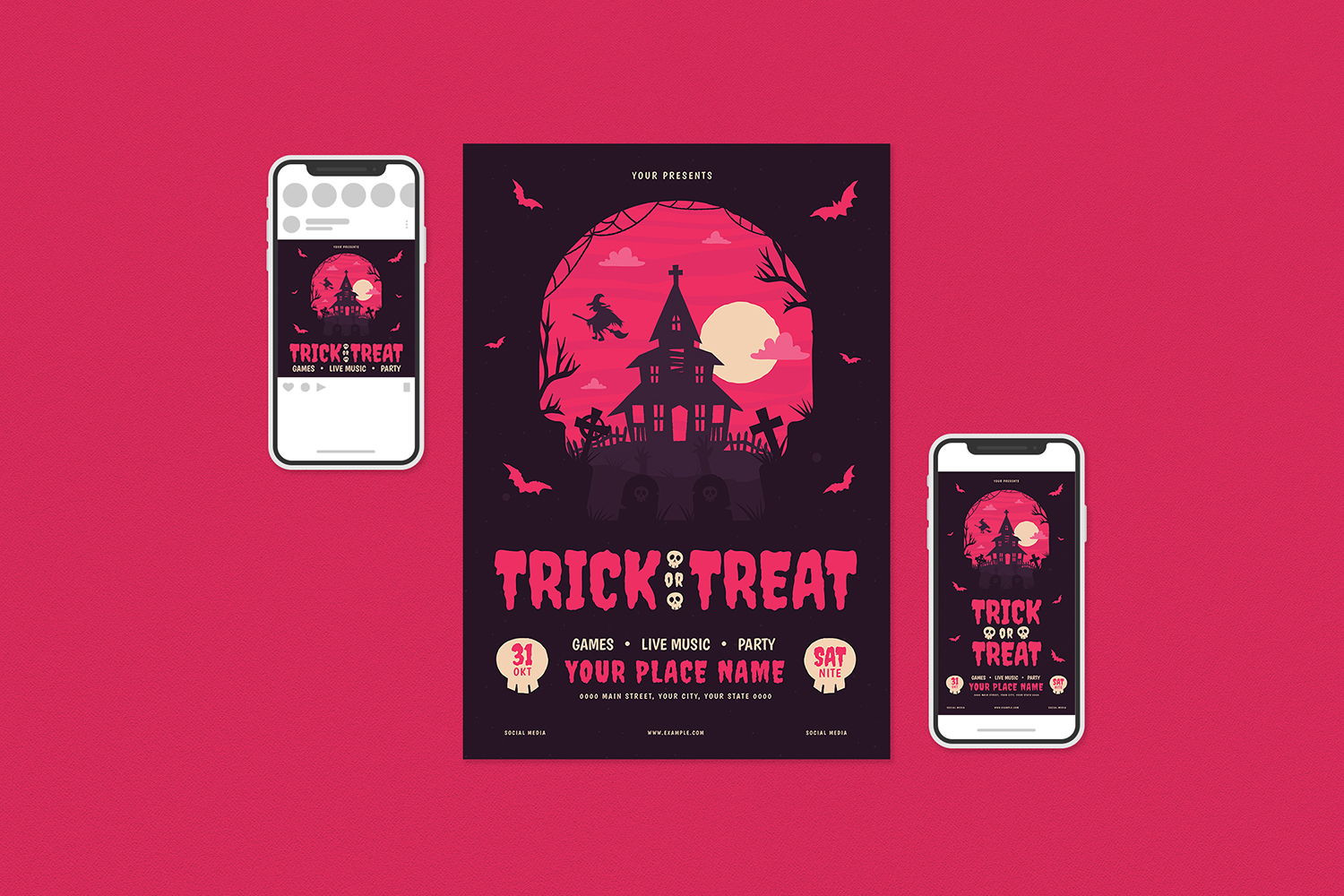 Download Фирменный стиль "Trick Or Treat Party Flyer - Corporate Identity Template" / Trick Or Treat Party Flyer - Corporate Identity Template - Фирменный стиль на тему графика autumn,carving,character,children,event,festival,flyer,ghost,grave,halloween,holiday,illustration,kids,poster,print,pumpkin,scary,skull,vector,zombie