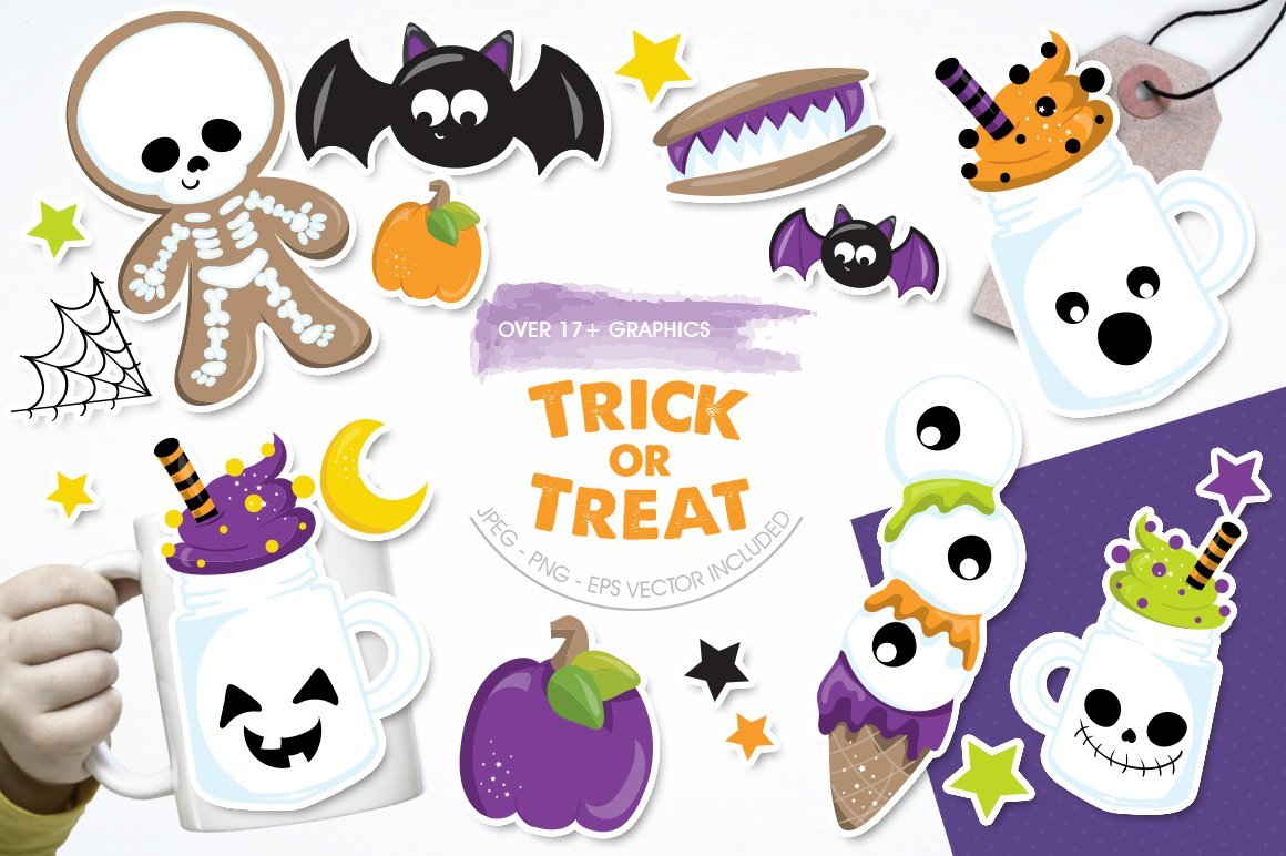 Download Vector "Trick or Treat - Vector Image" / Trick or Treat - Vector Image - Vector на тему графика scrapbook,scrapbooking,clipart,clip art,skeleton,halloween,ice-cream,mug,cookies,prettygrafik,pumpkins,vector art,cute drinks