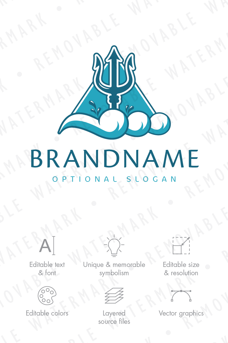 Download Шаблон логотипа "Trident of Titans Logo Template" / Trident of Titans Logo Template - Шаблон логотипа на тему графика wave ocean water sport swimming power sea triangle god storm flood trident poseidon titan neptune tidal logo design template cleaning