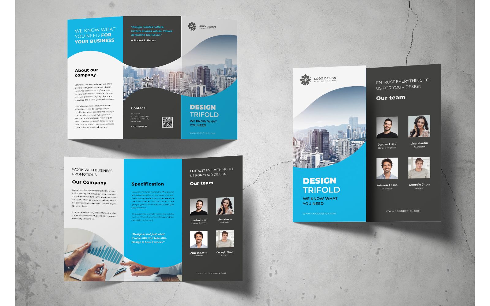 Download Фирменный стиль "Trifold We Known What You Need - Corporate Identity Template" / Trifold We Known What You Need - Corporate Identity Template - Фирменный стиль на тему графика trifold,brochure,design,adobe illustration,adobe photoshop,business,companies,document,identity,information