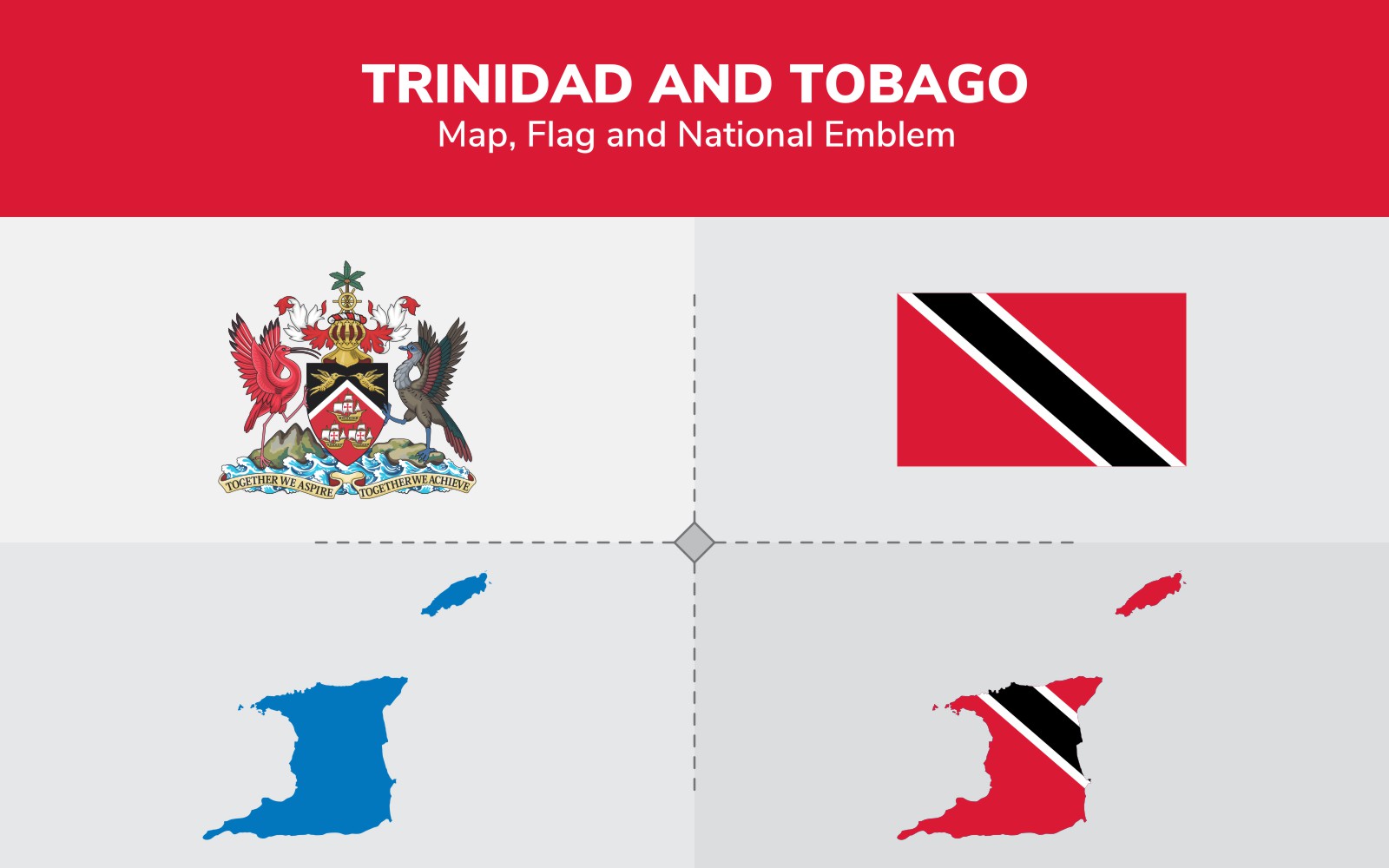 Download Иллюстрация "Trinidad and Tobago Map, Flag and National Emblem - Illustration" / Trinidad and Tobago Map, Flag and National Emblem - Illustration - Иллюстрация на тему графика continents,countries,map,political map,traveling,vector,emblem,national,flag,coat,arms,country,symbol,nations,state,sign,nation,badge,symbolic object,europe