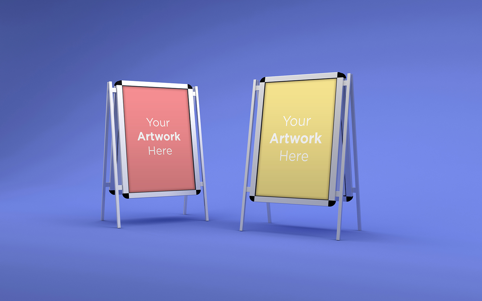 Download Мокап для продукта "Two Metallic notice board stand mockup product mockup" / Two Metallic notice board stand mockup product mockup - Мокап для продукта на тему графика promotional,communication,outdoor,metal,tent,mock up,billboard,store,modern,restaurant,menu,mockup,display,stand,blank,empty,template,white,banner,isolated