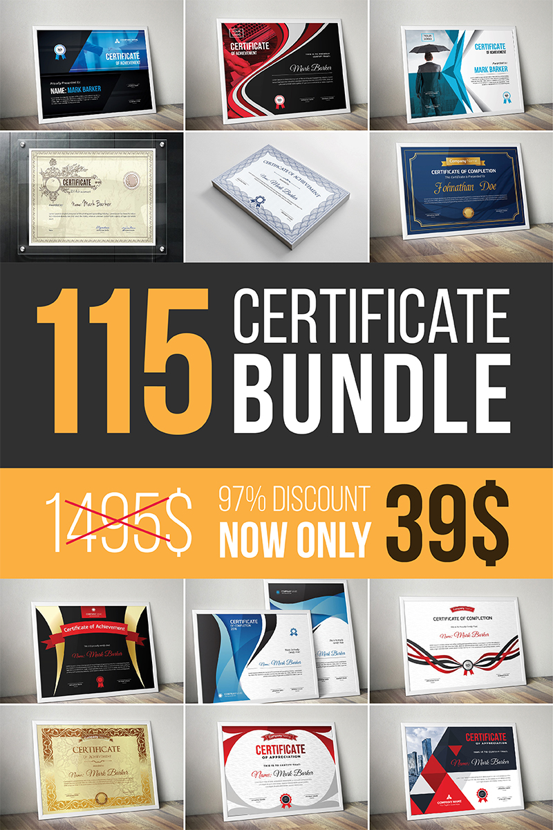 Download Шаблон сертификата "Ultimate Bundle Certificate Template" / Ultimate Bundle Certificate Template - Шаблон сертификата на тему графика certificate corporate decorative diploma elegant excellence frame graduation green modern multicolor ornament ornaments paper print ready template professional bundle pack
