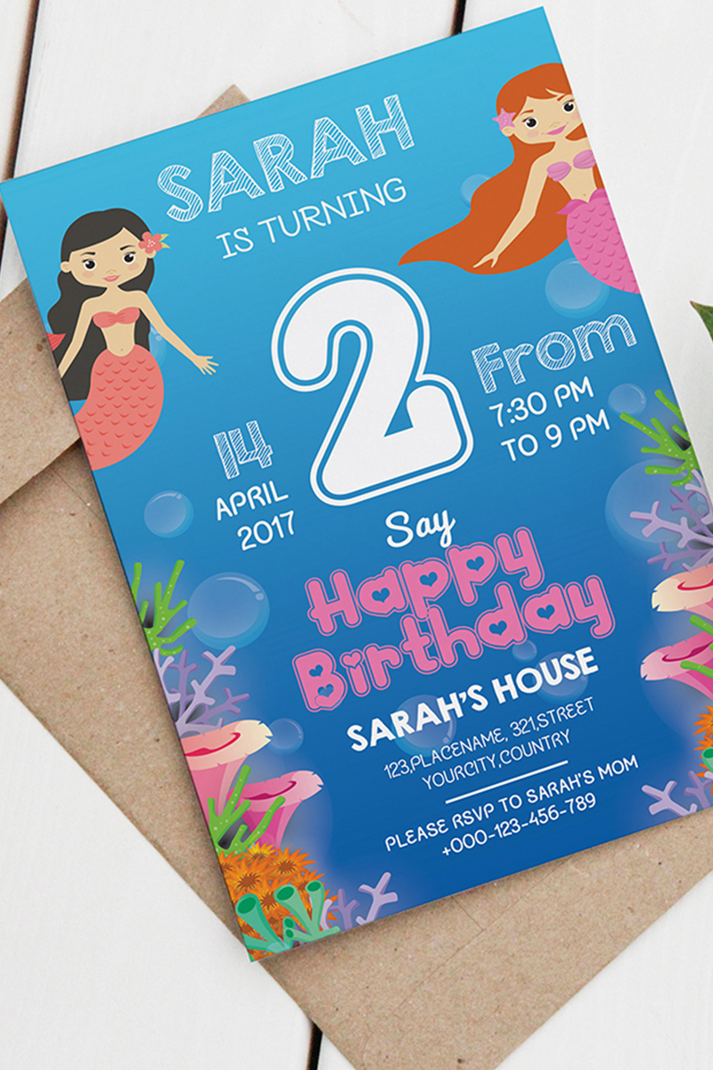 Download Фирменный стиль "Under Sea Mermaid Birthday Party Invitation - Corporate Identity Template" / Under Sea Mermaid Birthday Party Invitation - Corporate Identity Template - Фирменный стиль на тему графика announcements invitations baby party birthday flyer girl happy mermaid paper supplies print ready printable starfish under sea