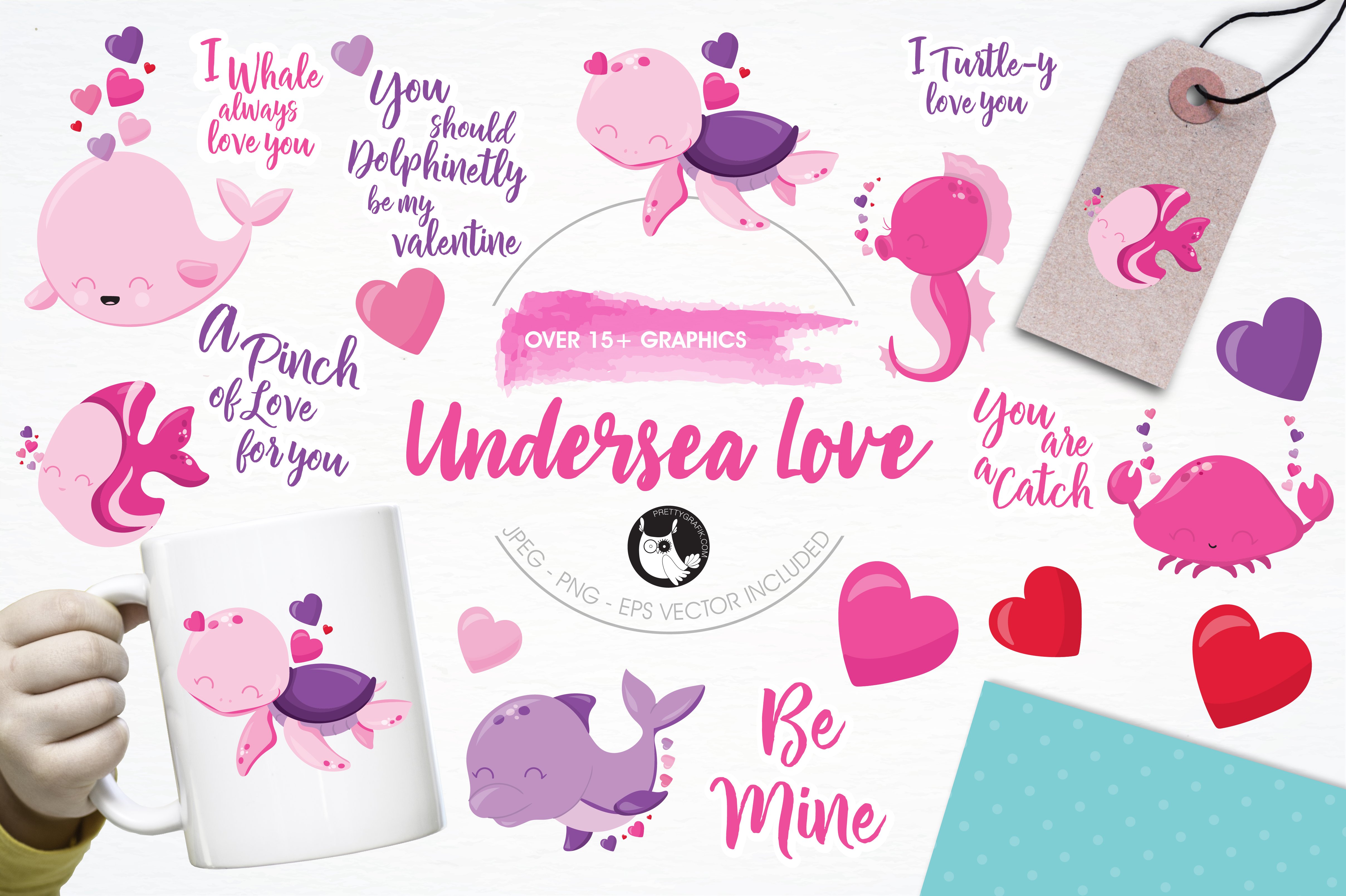 Download Vector "Undersea love illustration pack - Vector Image" / Undersea love illustration pack - Vector Image - Vector на тему графика illustration,heart,vector,graphics,clipart,clip art,animals,sea,icons,whale,fish,valentines day,eps,crab,turtle,prettygrafik,dolphin