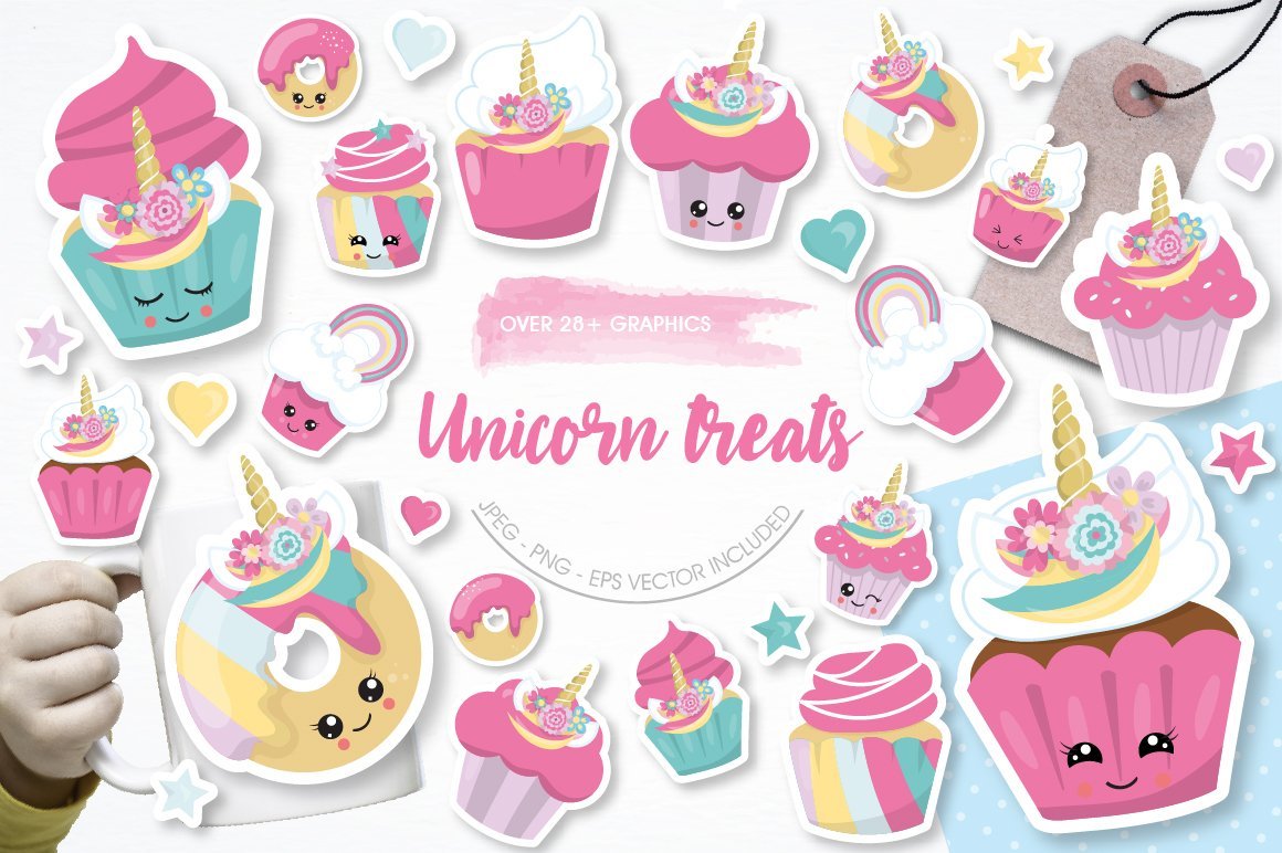 Download Vector "Unicorn Treats - Vector Image" / Unicorn Treats - Vector Image - Vector на тему графика scrapbook,scrapbooking,clipart,clip art,kawaii,cupcake,unicorn,prettygrafik,treats,vector art,sweets clipart