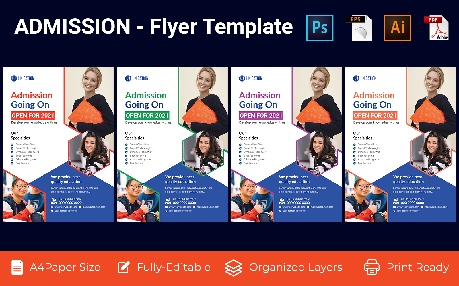 Download Фирменный стиль "University Admission promotion flyer PSD, AI design volume-8" / University Admission promotion flyer PSD, AI design volume-8 - Фирменный стиль на тему графика admission,admission card,admission flyer,child,child education,children,colorful,colorful flyer,curriculum,curriculum vitae,education,flyer,invitation,junior,junior school promotion,kid,kids,