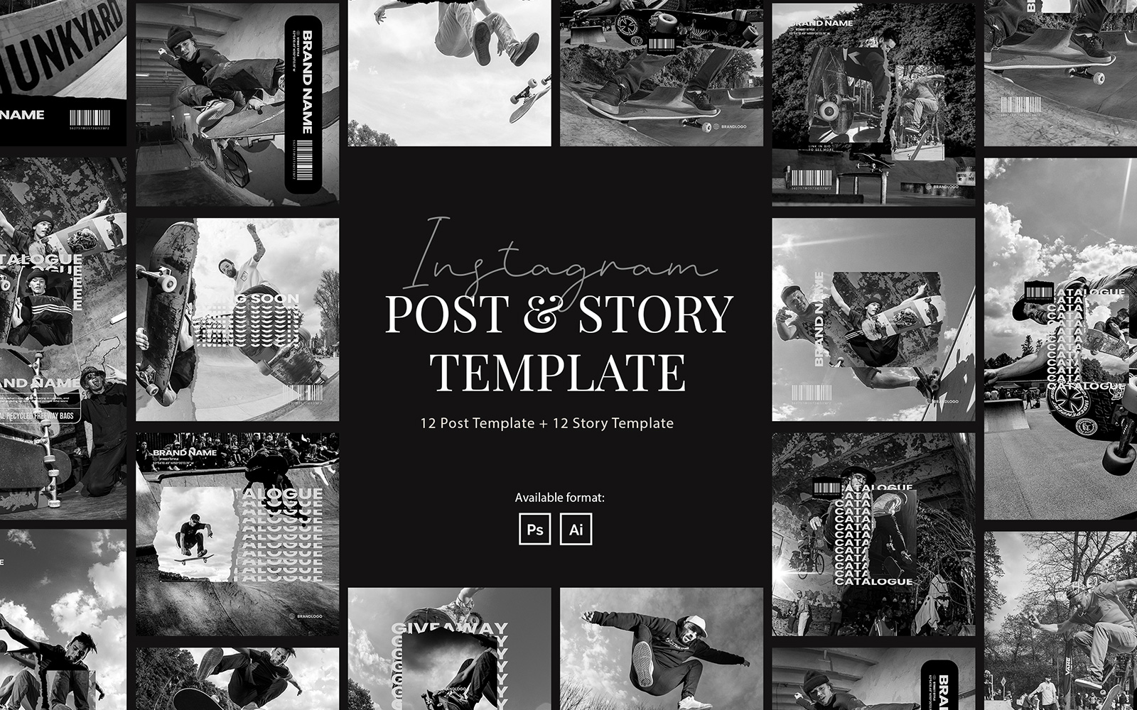 Download Шаблон для соцсетей "Urban Monochrome Style Instagram Post and Story Template for Social Media" / Urban Monochrome Style Instagram Post and Story Template for Social Media - Шаблон для соцсетей на тему графика urban instagram,industrial,fashion industrial,instagram for industrial,modern instagram,instagram story,business,brand,lifestyle,minimalist,modern,elegant,simple,creative,template,instagram p