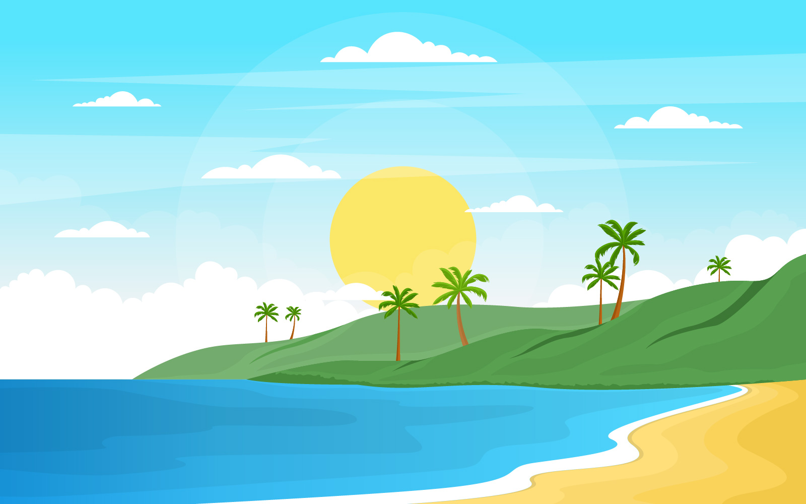 Download Иллюстрация "Vacation in Tropical Beach Palm Tree - Illustration" / Vacation in Tropical Beach Palm Tree - Illustration - Иллюстрация на тему графика vacation,tropical,beach,sea,palm,tree,summer,landscape,background,sky,island,panorama,sand,holiday,paradise,exotic,seascape,coastline,summertime,nature