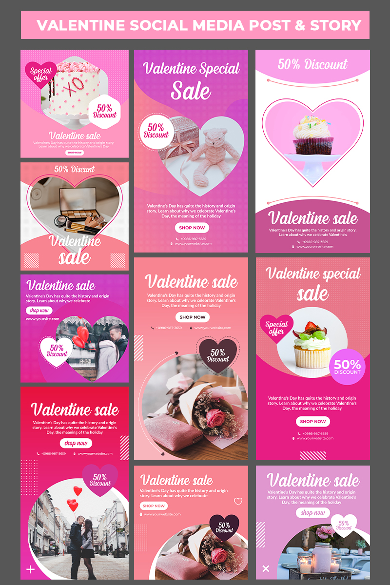 Download Шаблон для соцсетей "Valentine banner and story set Social Media Template" / Valentine banner and story set Social Media Template - Шаблон для соцсетей на тему графика banner sale template instagram socaial media valentine offer social post story facebook valedtine day