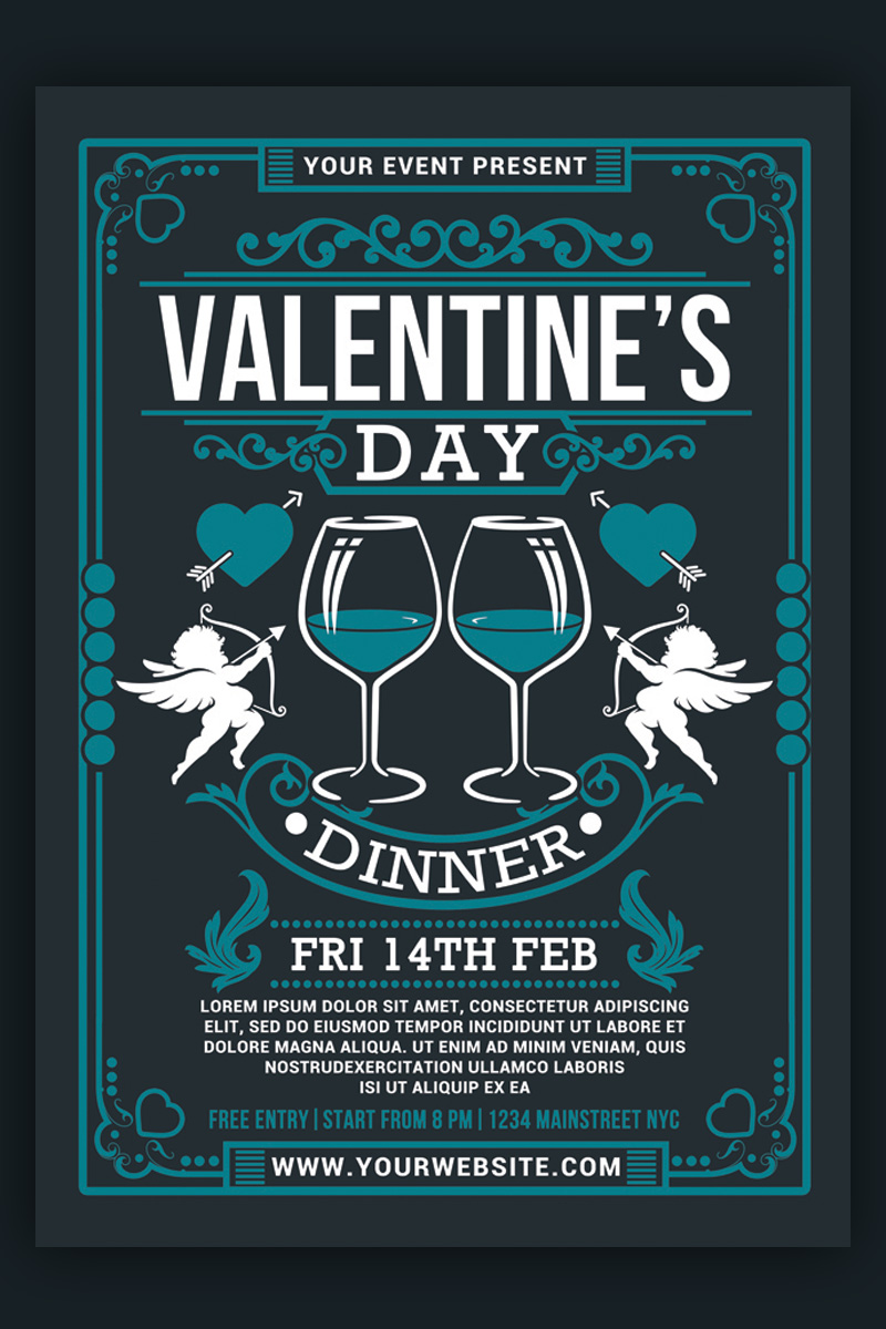 Download Фирменный стиль "Valentine's Day Dinner - Corporate Identity Template" / Valentine's Day Dinner - Corporate Identity Template - Фирменный стиль на тему графика anniversary be my valentine cupid dinner invitation invite elegant heart hearts lovers luxury modern nightclub flyer party romance single singles
