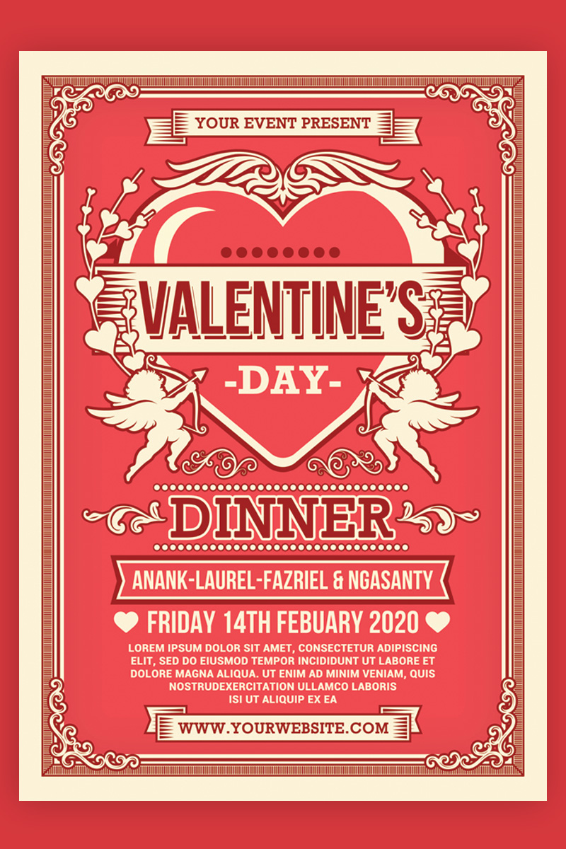 Download Фирменный стиль "Valentine's Day Dinner Flyer - Corporate Identity Template" / Valentine's Day Dinner Flyer - Corporate Identity Template - Фирменный стиль на тему графика anniversary be my valentine cupid dinner invitation invite elegant heart hearts lovers luxury modern nightclub flyer party romance single singles