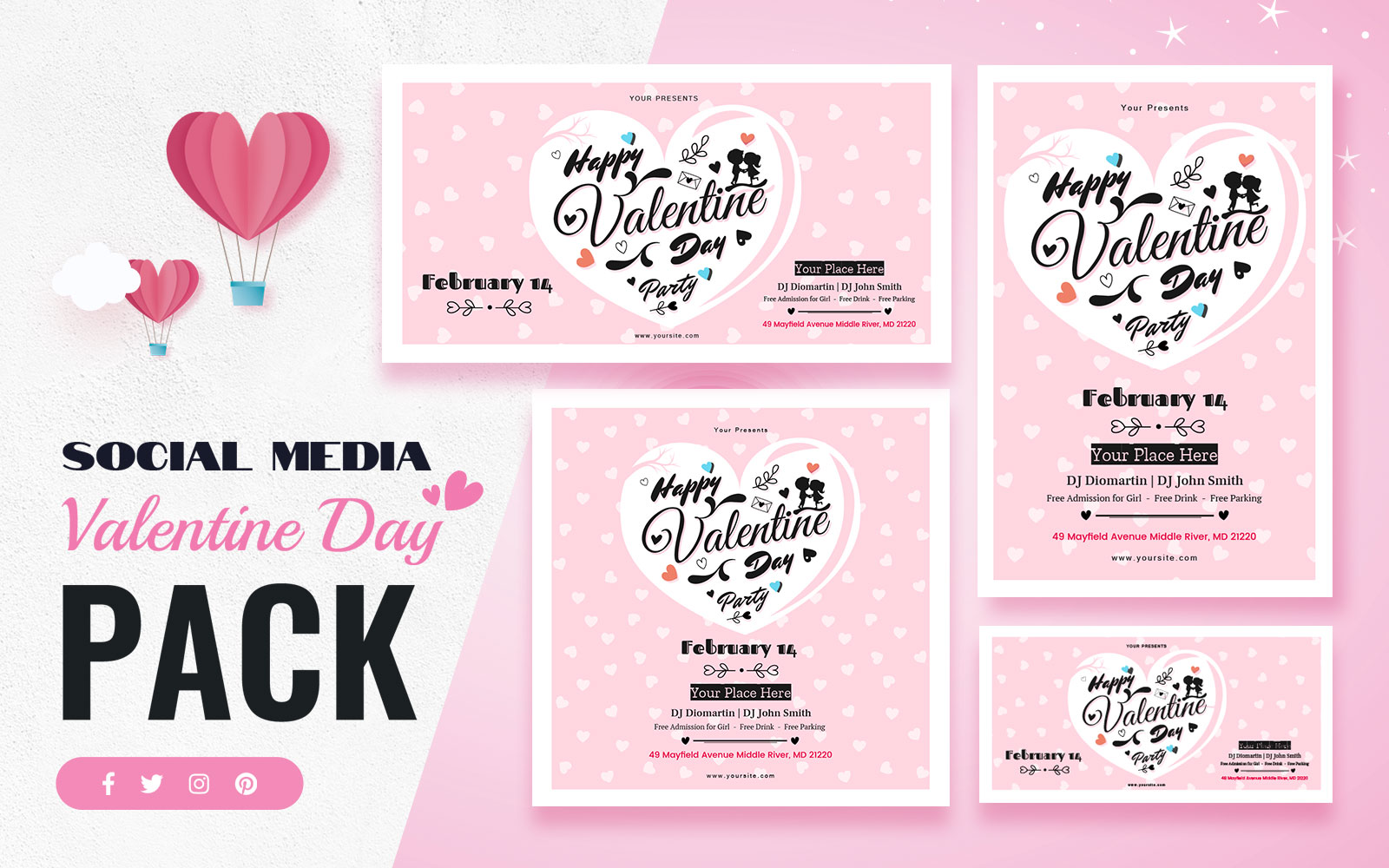 Download Шаблон для соцсетей "Valentines Day Social Media Template" / Valentines Day Social Media Template - Шаблон для соцсетей на тему графика instagram,facebook,banner,promotion,twitter,social,media,pack,pinterest,kit,shop,valentines,day,template