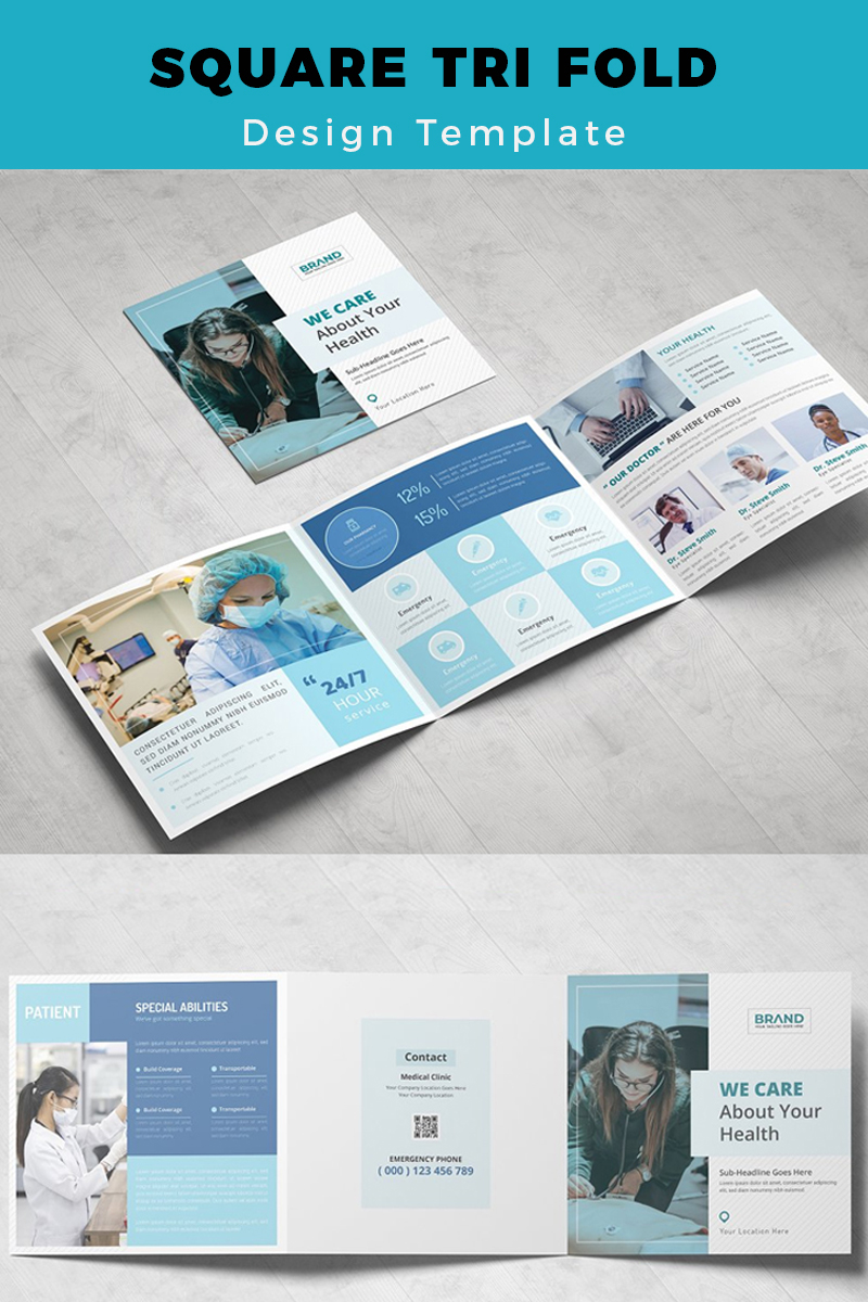 Download Фирменный стиль "Vallen Medical & Hospital Square Trifold Brochure - Corporate Identity Template" / Vallen Medical & Hospital Square Trifold Brochure - Corporate Identity Template - Фирменный стиль на тему графика publication layout magazine trifold square template advertisement catalog annual design vector business abstract print corporate leaflet company profile unique medical