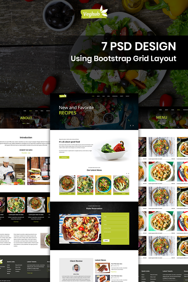 Download PSD шаблон "Veghub - Vegetarian Restaurant PSD Template" / Veghub - Vegetarian Restaurant PSD Template - PSD шаблон на тему вегетарианский ресторан vegetarian restaurant psd photoshop theme template