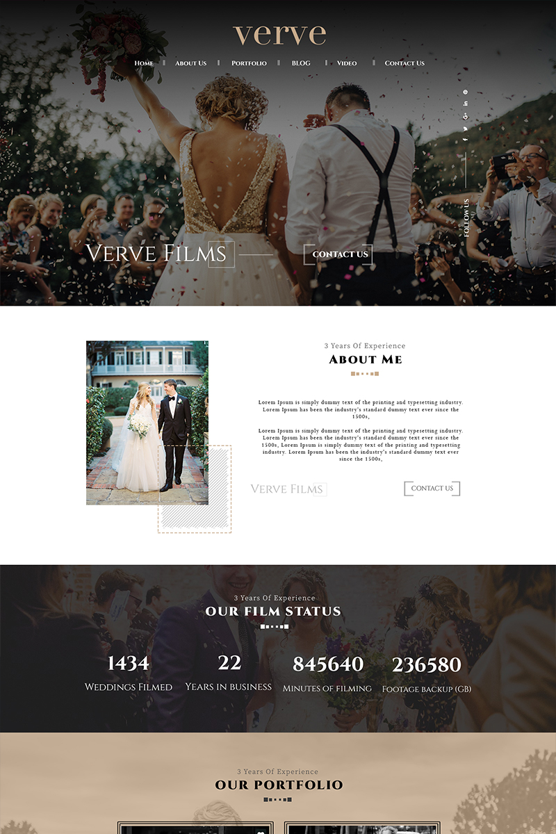 Download PSD шаблон "Vervefilms - Wedding Photography PSD Template" / Vervefilms - Wedding Photography PSD Template - PSD шаблон на тему фотограф wedding photography photos