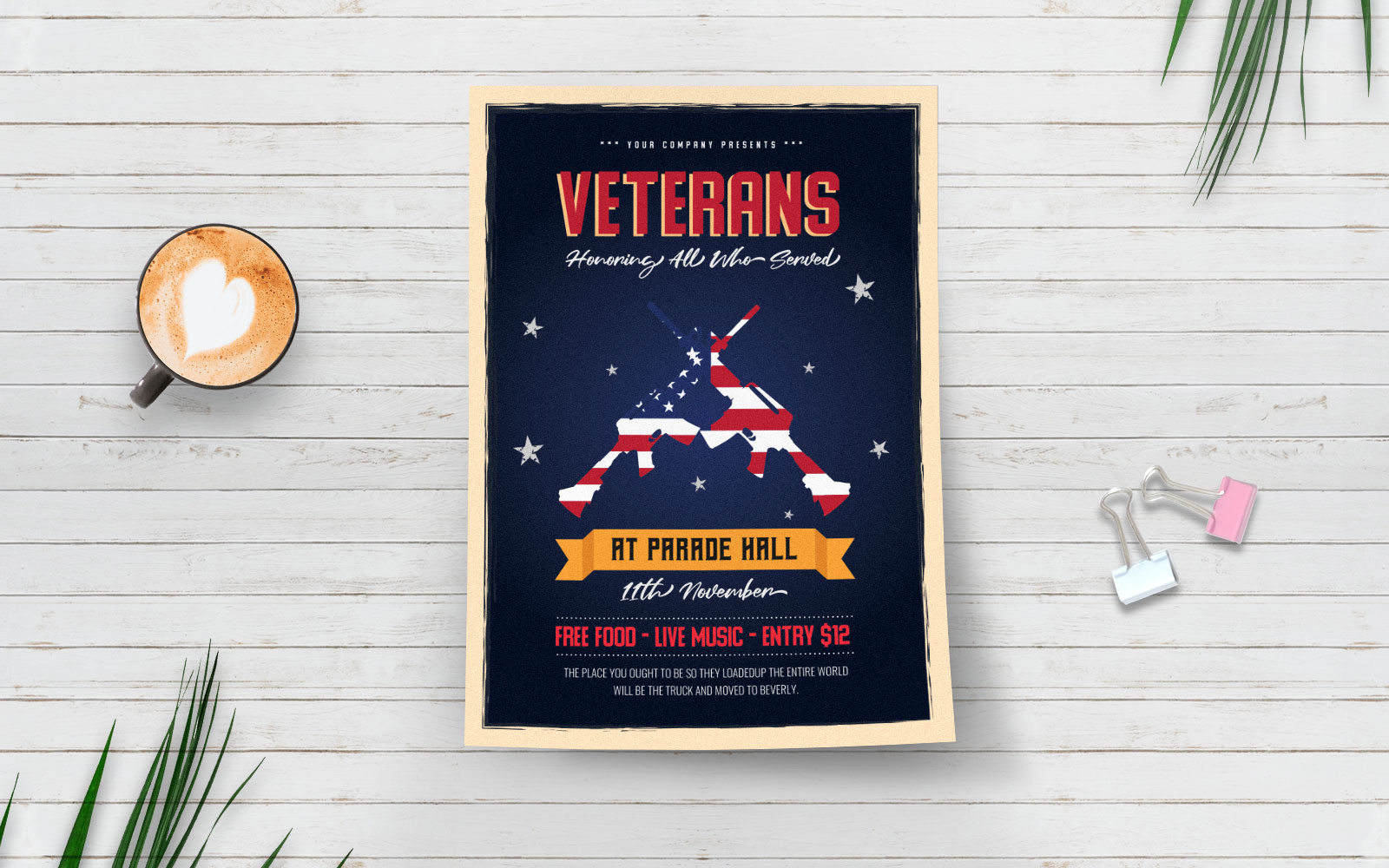 Download Фирменный стиль "Veterans Day Flyer - Corporate Identity Template" / Veterans Day Flyer - Corporate Identity Template - Фирменный стиль на тему графика veteran,red,celebration,united,day,national,patriotism,us,america,star,patriotic,american,vector,flag,background,memorial,holiday,state,symbol,army