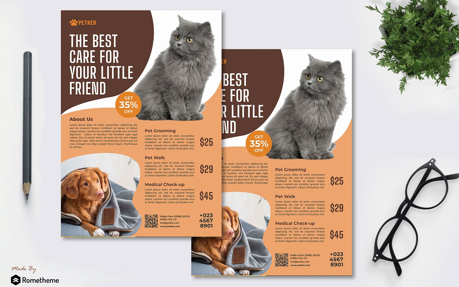 Download Фирменный стиль "Veterinary vol.02 - Pet Care Flyer RB - Corporate Identity Template" / Veterinary vol.02 - Pet Care Flyer RB - Corporate Identity Template - Фирменный стиль на тему животные a4,animal,animals,banner,branding,brochure,brown,business,care,clean,clinic,company,corporate,creative,design,doctor,dog,elegant,flyer,grooming