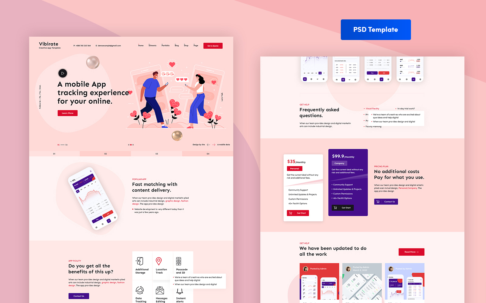 Download PSD шаблон "Vibirate - App PSD Template" / Vibirate - App PSD Template - PSD шаблон на тему компания по разработке по app,app,psd,appstore,software,corporate,business,agency,creative,new,clean,template