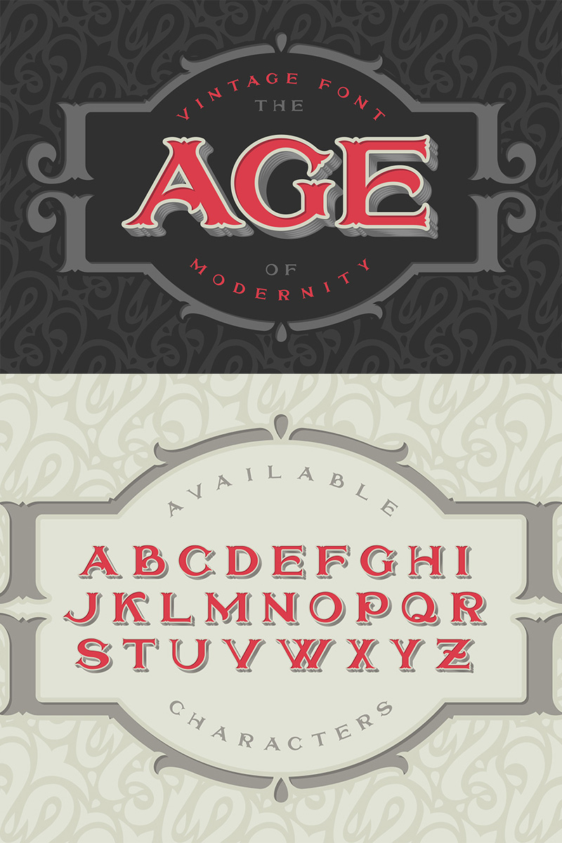 Download Шрифт "VIntage "The age of modernity" Font" / VIntage "The age of modernity" Font - Шрифт на тему графика font,modern,vintage,typeface,decorative,ornate,frame,packing,antique,old,aged,style,script,volume,bevel,extruded,pattern,eps,retro,letter