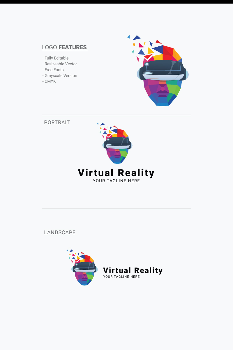 Download Шаблон логотипа "Virtual Reality Logo Template" / Virtual Reality Logo Template - Шаблон логотипа на тему графика brain connection creative creativity development digital electronic face head headset human immersive innovation innovative man mind network pixel reality smart