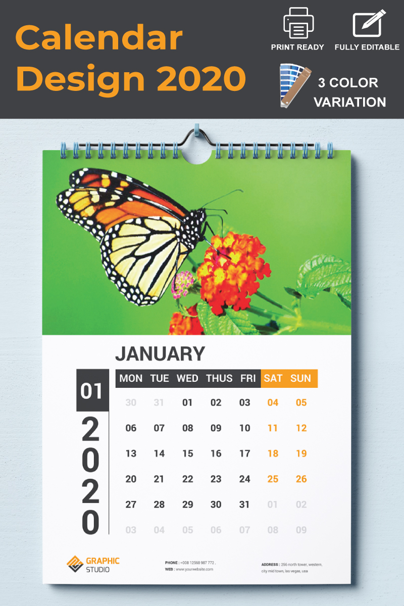 Download Planner "Wall Calendar 2020 Planner" / Wall Calendar 2020 Planner - Planner на тему графика 12 pages calendar 2020 wall clean colorful corporate creative design stocks desk elegant modern one page one page calendar planner
