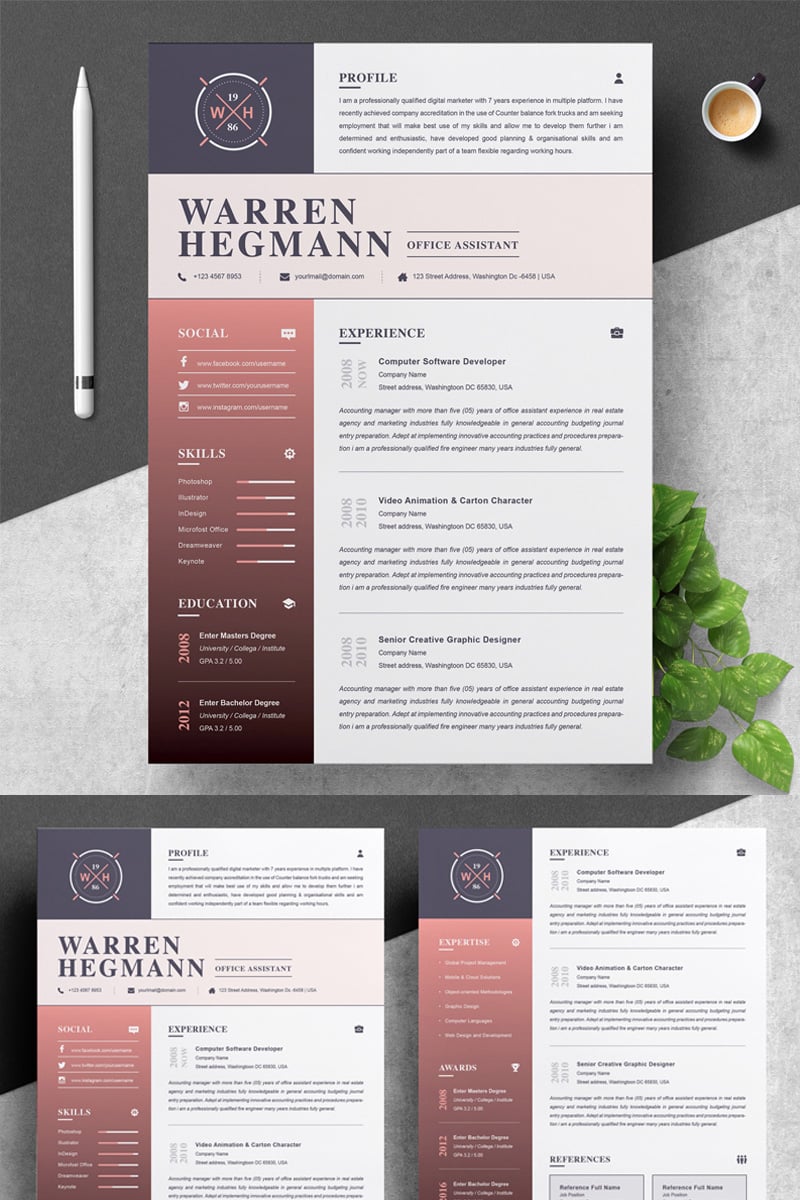 Download Резюме "Warren Resume Template" / Warren Resume Template - Резюме на тему графика 1 page cv resume 2 3 apple clean cover letter curriculum vitae template illustrator eps mac pages microsoft word minimal