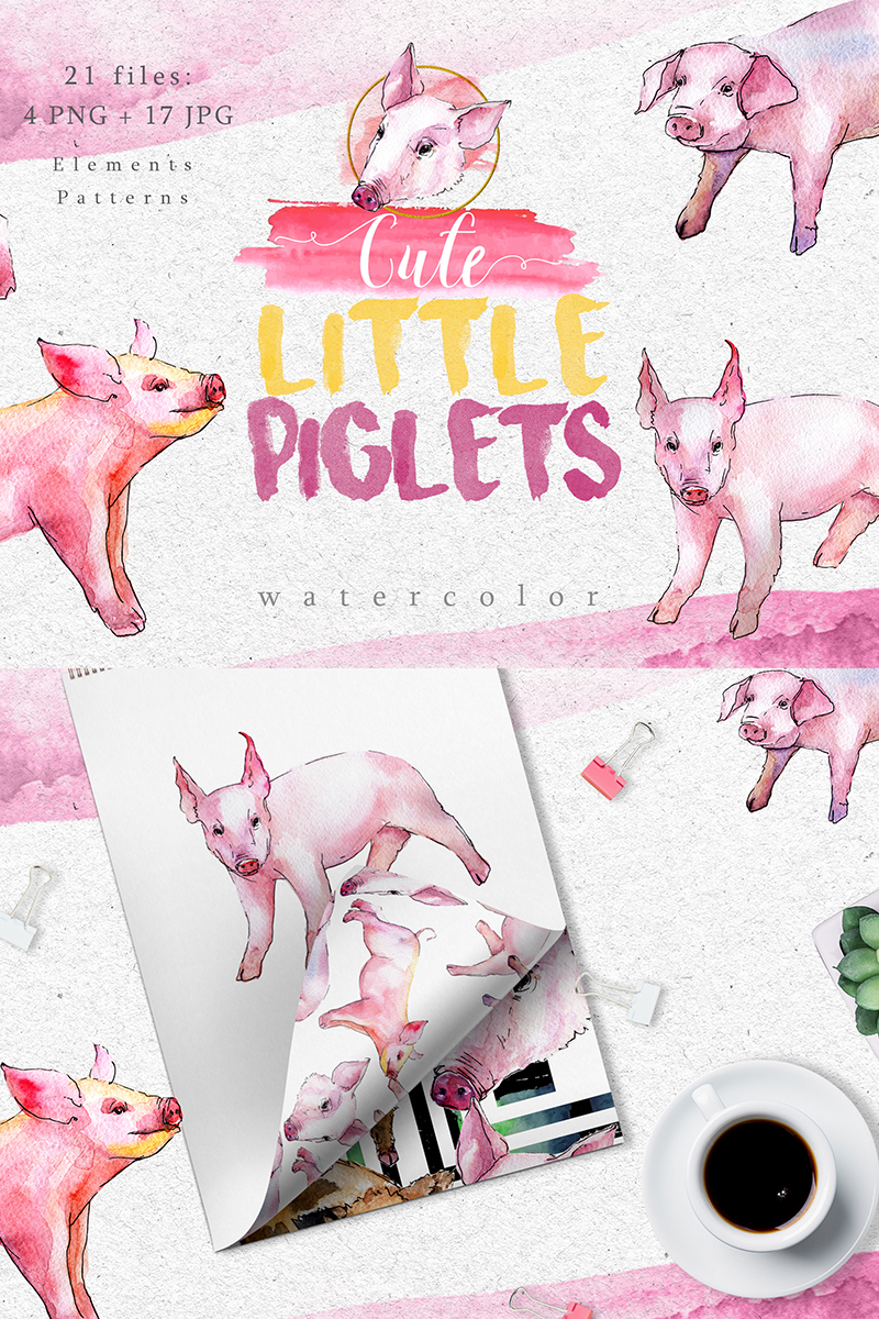 Download Иллюстрация "Watercolor Pink Pig Png Set - Illustration" / Watercolor Pink Pig Png Set - Illustration - Иллюстрация на тему графика pig watercolor illustration farm animal cute isolated nature white piggy background drawn pink pigs little bandana funny drawing painting pet