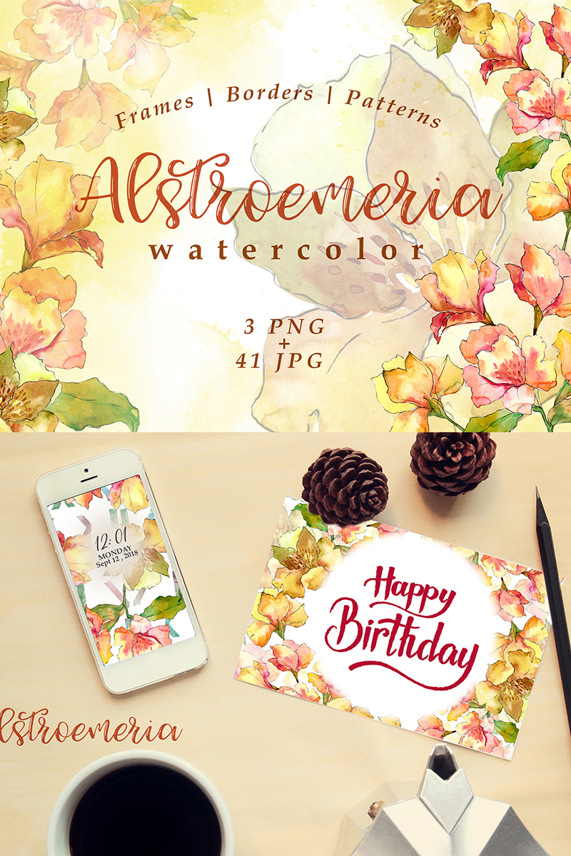 Download Иллюстрация "Watercolor Yellow Alstroemeria Flower PNG Set - Illustration" / Watercolor Yellow Alstroemeria Flower PNG Set - Illustration - Иллюстрация на тему графика watercolor illustration yellow alstroemeria drawing background colorful drawn paint leaf plant wildflower seasonal foliage flower sprout stem textile botanical garden
