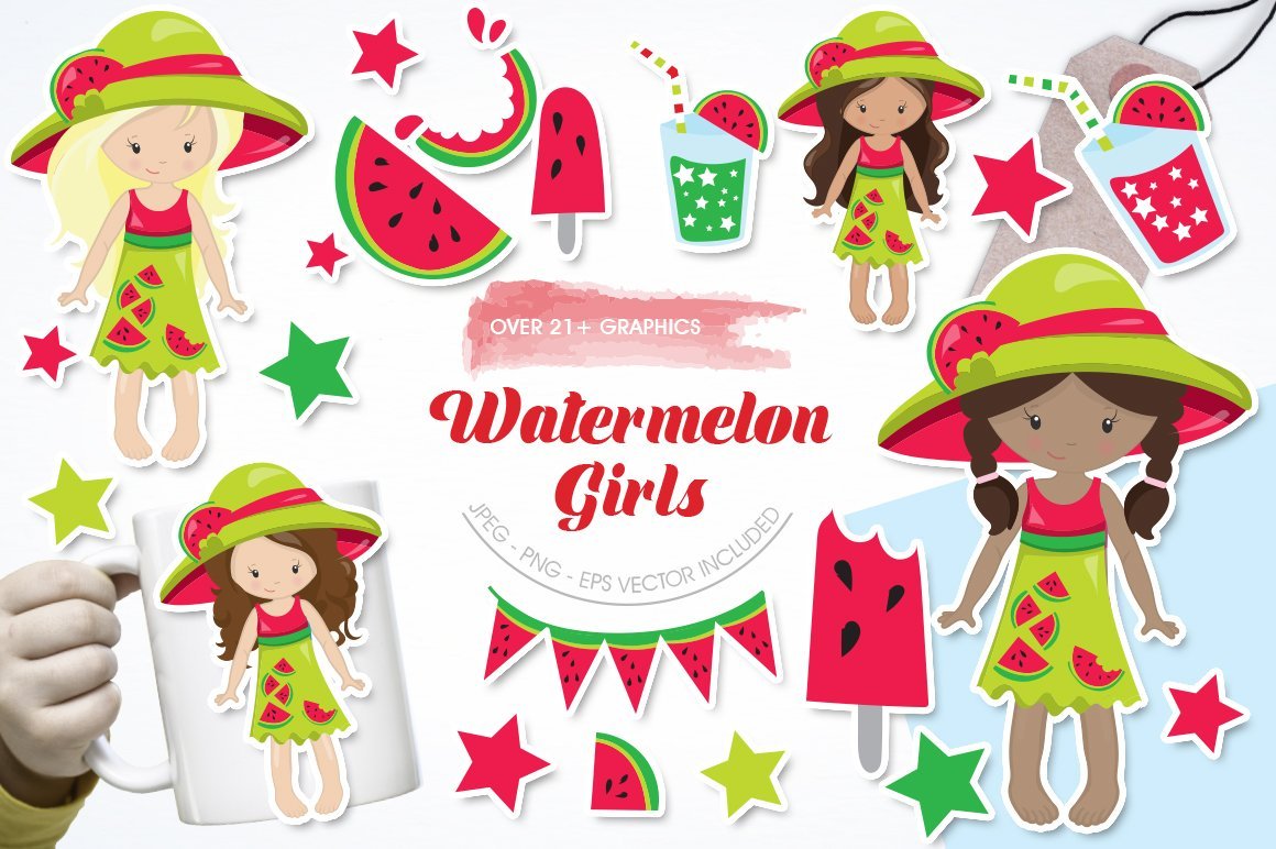 Download Vector "Watermelon Girls - Vector Image" / Watermelon Girls - Vector Image - Vector на тему графика scrapbook,scrapbooking,clipart,clip art,kawaii,watermelon,sweets,popsicle,prettygrafik,girls,vector art